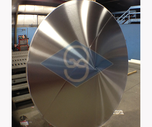 当封头由瓣片和顶圆板拼接制成时,接头方向只允许是径向和环向的,中心顶圆板直径应小于1/2DN。